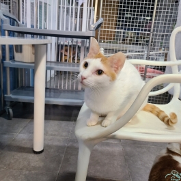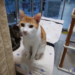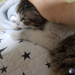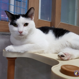 지금은 완전히 익숙해져 이곳에서 편안하게 지내면서 봉사자들 앞에서도 더 이상 숨지 않고, 집사가 만질 때도 얌전히 만지게 해주는 반 집고양이가 되었습니다.