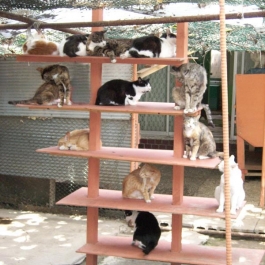 대전회원 고중철, 서지원씨부부가 돌보는 두 마리 강아지. 큰애는 '명월이' 작은 애'노은'이 보은 보호소를 방문하고 즐거운 표정이다. 옥상 고양이 놀이터에서.