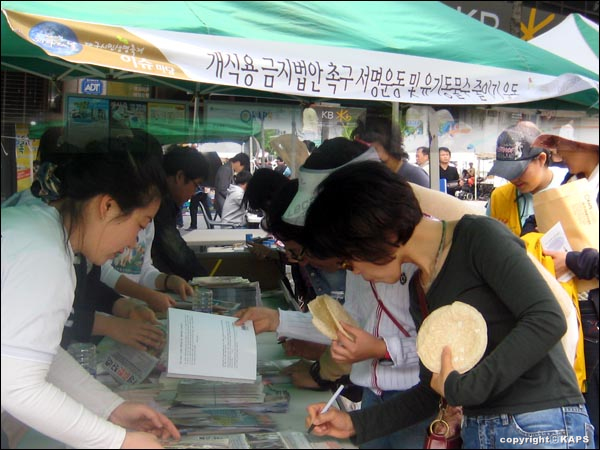 2008년 4월 20일(일) 맑고푸른대구21에서 주최하는 지구의날 행사에 "개식용금지법안촉구서