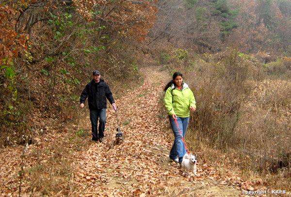 브라이안씨와 청보, 곁에는 보리와 제 앞으로 염순이(Grace)가 가고 있어요.