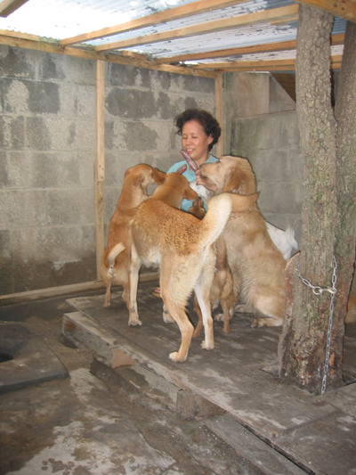8월 10일 뜨거운 날씨에 개들이 헉헉거리는 것이 안스러워 얼음과자를 사주었습니다. 모두 얼마나 잘 먹는지요. 그게다 너구리까지 신나게 먹었습니다. 개들과 너구리들이 잠시 더위는 잊은 듯 하였습니다. 올해 2월 스코트랜드에서 온 봉사자 로비 블레어는 몸이 아파 다시 고국으로 돌아갔습니다. 대신 호주 봉사자 레이철이 다시 한국으로 오면서 틈틈이 대구 동물보호소에 와서 봉사활동을 시작하고 있습니다. 이날 레이철은 나를 도와 함께 개들에게 얼음과자를 주면서 우리들은 땀이 범벅이 되었습니다.
