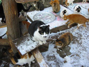 그것이나마 좋다고 고양이들은 모두 나와서 놀고 있는 모습들이 눈과 함께 아름다워 사진에 담아 보았습니다. 정말 아쉽게도 개들이 있는 곳에는 큰 발자국으로 눈을 밤 사이 짓밟아 버렸는데다 청소하는 분이 쬐금 남은 눈도 싹쓸이하여 쓰레기 통에 버려 우리 개들이 눈 위에 노는 모습은 볼 수 없었습니다.