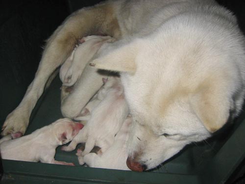 엠브렌스 주변에서 서성거리던 어미는 새끼 우는 소리에 번개같이 차안으로 들어와 새끼들에게 젖을 먹이는 순덕이