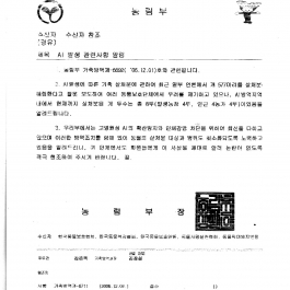 관하여 12월 4일 농림부에서 보내 온 공문 내용입니다.