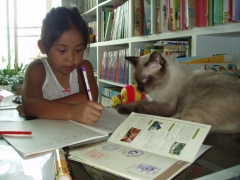 이렇게 공부를 가리키느라 피곤한 고양이선생님 또이는 잠잘때는