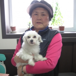 김영희씨는 자신이 발견하여 보호소에 보낸 말티가 오랜기간동안 주인이 나타나지 않고 입양이 되지 않자 안타까운 마음이 입양을 결정하였다.