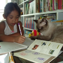 또이가 예빈이 공부를 봐주고 있네요... 이렇게 공부를 가리키느라 피곤한 고양이선생님 또이는 잠잘때는 귀여운 학생 예빈이를 꼭~~~껴안고서 잔답니다. ㅋㅋㅋ 다음편을 기대해 주세요~~~ 참.. 또이는 동물보호협회에서 입양한 삼...
