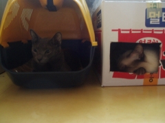 첫째 날- 새로운 집에 왔는데 덩치 큰 형아가 하악질을 해서 너무 무섭다. 둘째 날 - 너무 무서워서 엄마 장농안에 숨어 있었다. 셋째 날 - 책장 위에 숨어 있었더니 형아가 같이 놀자고 자꾸 부른다. 한참을 망설이다가 ...