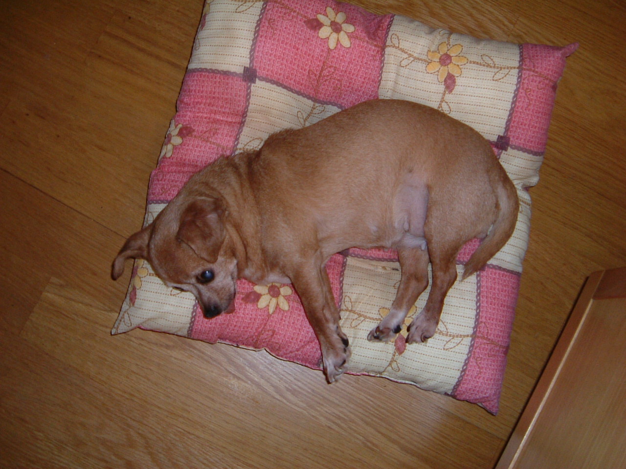 방석을 유난이 좋아하는 홍이. 소화가 지내던 주차장에 누가 이 작은 애를 버리고 갔다. 다른 사람에게 입양을 시켰는데  중국으로    간다며 내게 돌려 주었다.  나이도 10살은 되었을 홍이는 겁도 많고 사람을 두려워하고 잘 안따른다.