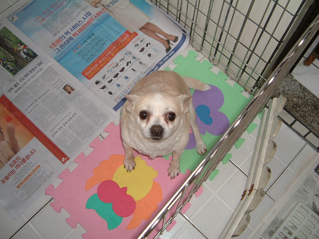 그러던 어느날 너무 마구 싸서 화가나 고랑문을 열어두고 앞 베랜다에 밤에 벌을 주려고 내다 놓았는데 비가 왔다.  아침에 보니 건강한 남자 아이는 멀쩡한데 약한 여자애는 갑자기 부르르 떨고 입에 거품까지 물고 토하고 하였다. 병원에 가니 홍역이라고 하였다.  할아버지는 예방접종도 안하고 내게 주었는데 나도 그런 상식도 별로 갖추지 못하였다.  결국 여자 페키니즈는 눈까지 멀고 고통속에 떠나게 되었다.