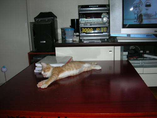 상 위에서 "미켓 오빠! 나 좀 봐 줄래" 하며 야옹 야옹 거려도 쳐다보지 않고 딴전 피우는 "미켓".