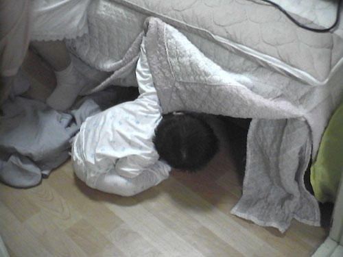 침대 밑으로 쏙~들어가버린 진이를 훈이가 찾고 있는중입니다...맨 마지막사진은 잡힐듯 잡힐듯 하면서 안잡히고 훈이 총각의 애를 태우는 진이뇬의 사진입니다...