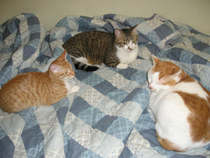 왼쪽부터 하니,아지,누피입니다^^ 사진찍은지는 좀되었는데 현재 딱히찍어둔사진이없어 이렇게올려봅니다^^ (이불을보아하니 올해1월중순쯤찍은사진인듯해요) 현재 세마리 모두건강하답니다 다만 누피할배가 나이도있다보니 조금 골골대서 ...