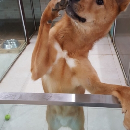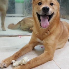 Heunja is in his twilight years but he loves to go for walks and he thoroughly tires our staff out. Of all our shelter dogs,