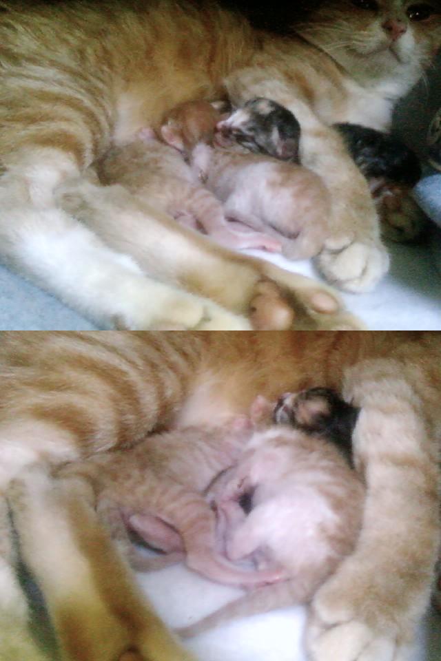 어미가 젖도 제대로 안 물릴려고하고ㅠ,,,,애기들이 잘 클지,,,,에휴,,ㅠ