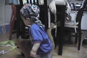침대 밑으로 쏙~들어가버린 진이를 훈이가 찾고 있는중입니다...맨 마지막사진은 잡힐듯 잡힐듯 하면서 안잡히고 훈이 총각의 애를 태우는 진이뇬의 사진입니다...